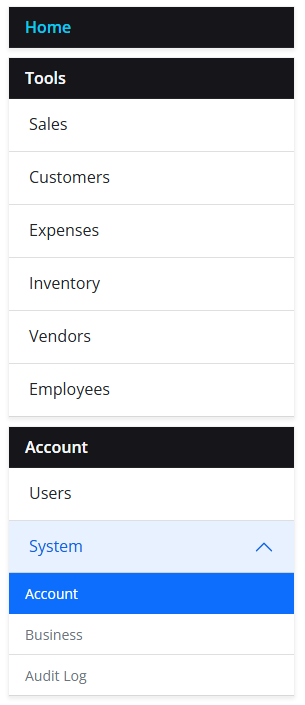 If you would like to cancel your current subscription, you must first login to the application. Once logged in, from the left hand side menu click System under the Account section to drop down the other menu items. Then click Account