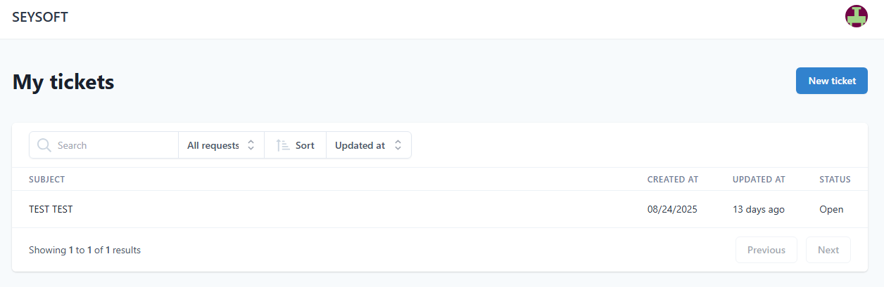 We recommend reviewing the relevant documentation section before opening a help ticket. Most common questions and setup steps are covered here, complete with visuals and troubleshooting tips. If you do need to submit a ticket it can be done by going to the main site https://seysoft.co and clicking on the Support tab. You must then log in with your main account and open a new ticket by clicking the blue New Ticket button near the top right of the page. Below is a screenshot for reference.